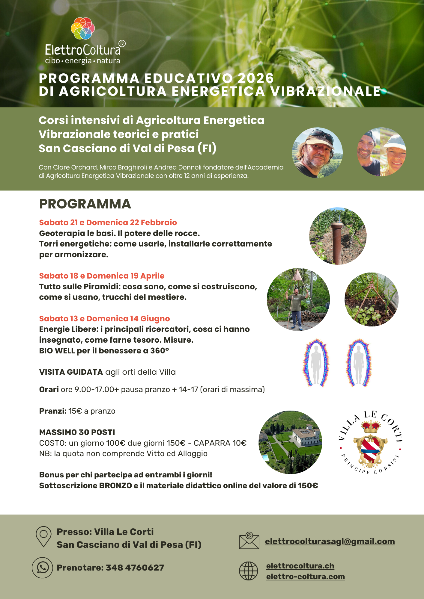 Nei terreni intorno alla villa in nostri amici Clare Orchard e Mirco Braghiroli hanno avuto la possibilità di creare orti con l’Agricoltura Energetica Vibrazionale grazie alla consulenza di Andrea Donnoli.
