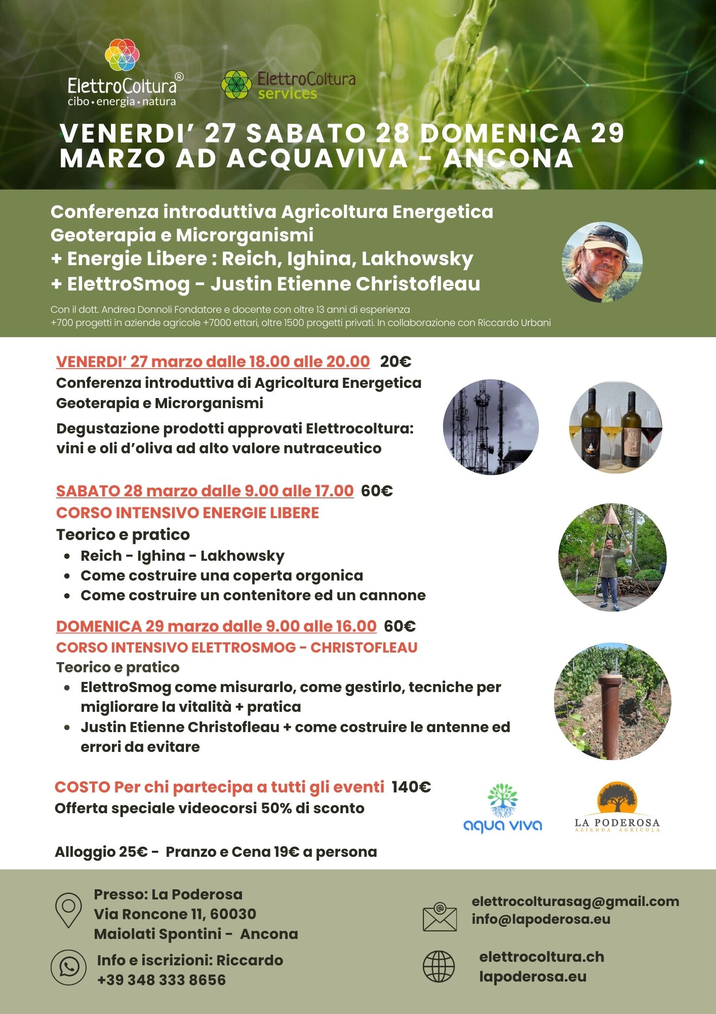 Con degustazione dei prodotti approvati Elettrocoltura: vini e oli d’oliva ad alto valore nutraceutico e ovviamente potrai testare anche quelli della Poderosa.